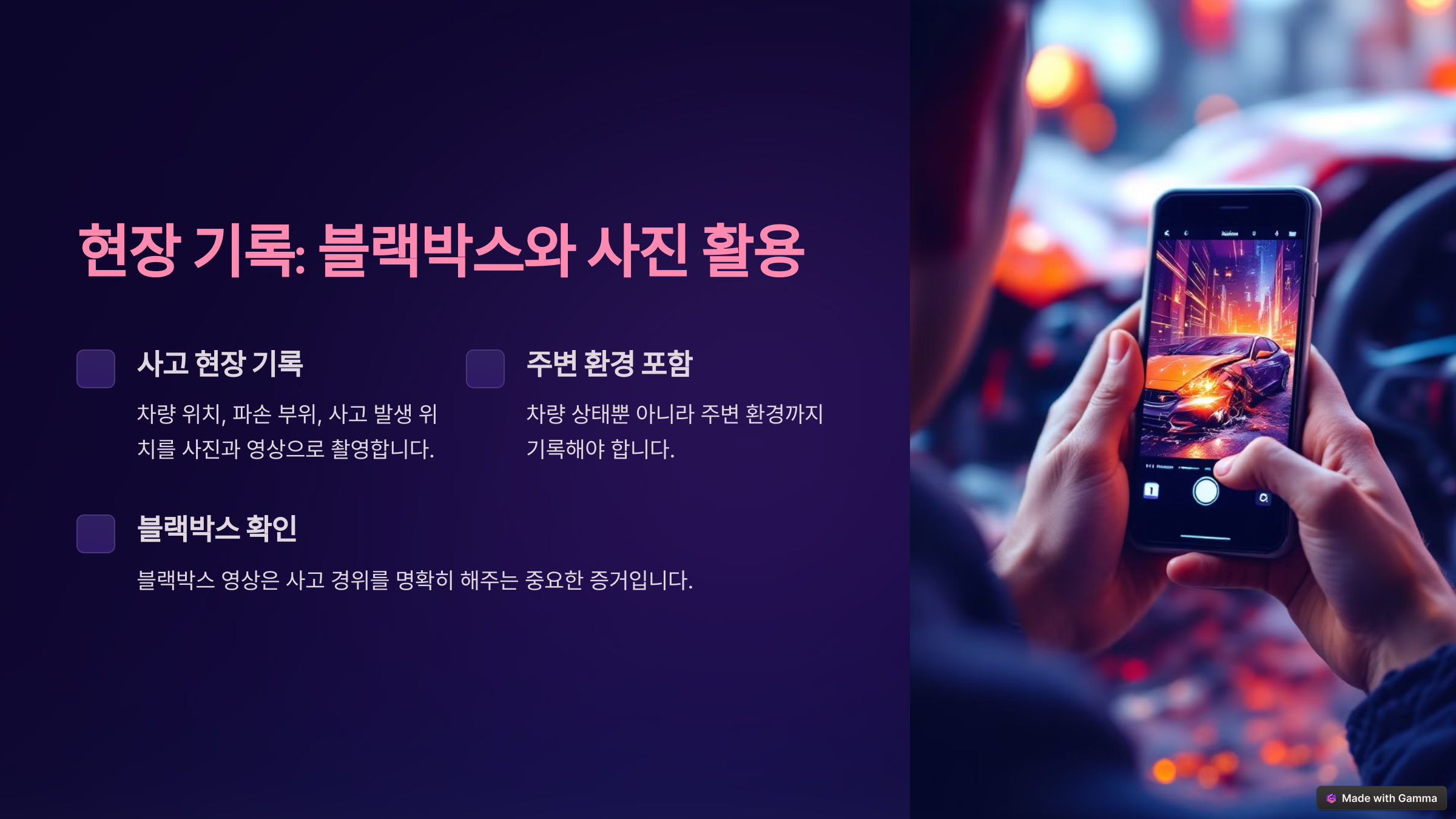 1. 사고 현장에서의 기록: 블랙박스와 사진 활용