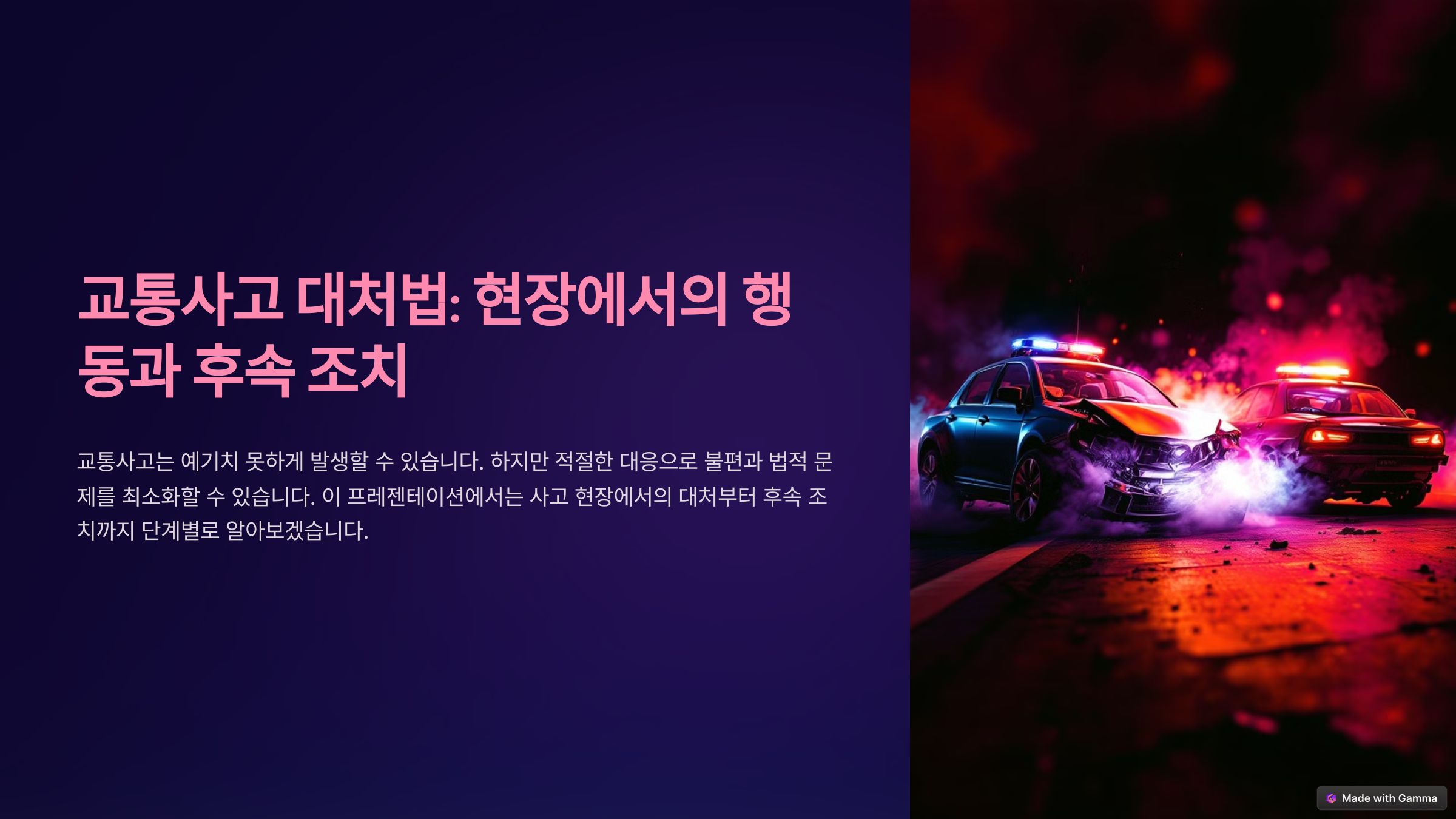 교통사고는 예기치 못하게 발생할 수 있지만, 적절한 대응과 대처는 사고 후 발생할 수 있는 불편과 법적 문제를 최소화하는 데 매우 중요합니다. 이번 포스팅에서는 교통사고 발생 시 현장에서의 대처 요령부터 후속 처리 방법까지 단계별로 알아보겠습니다.