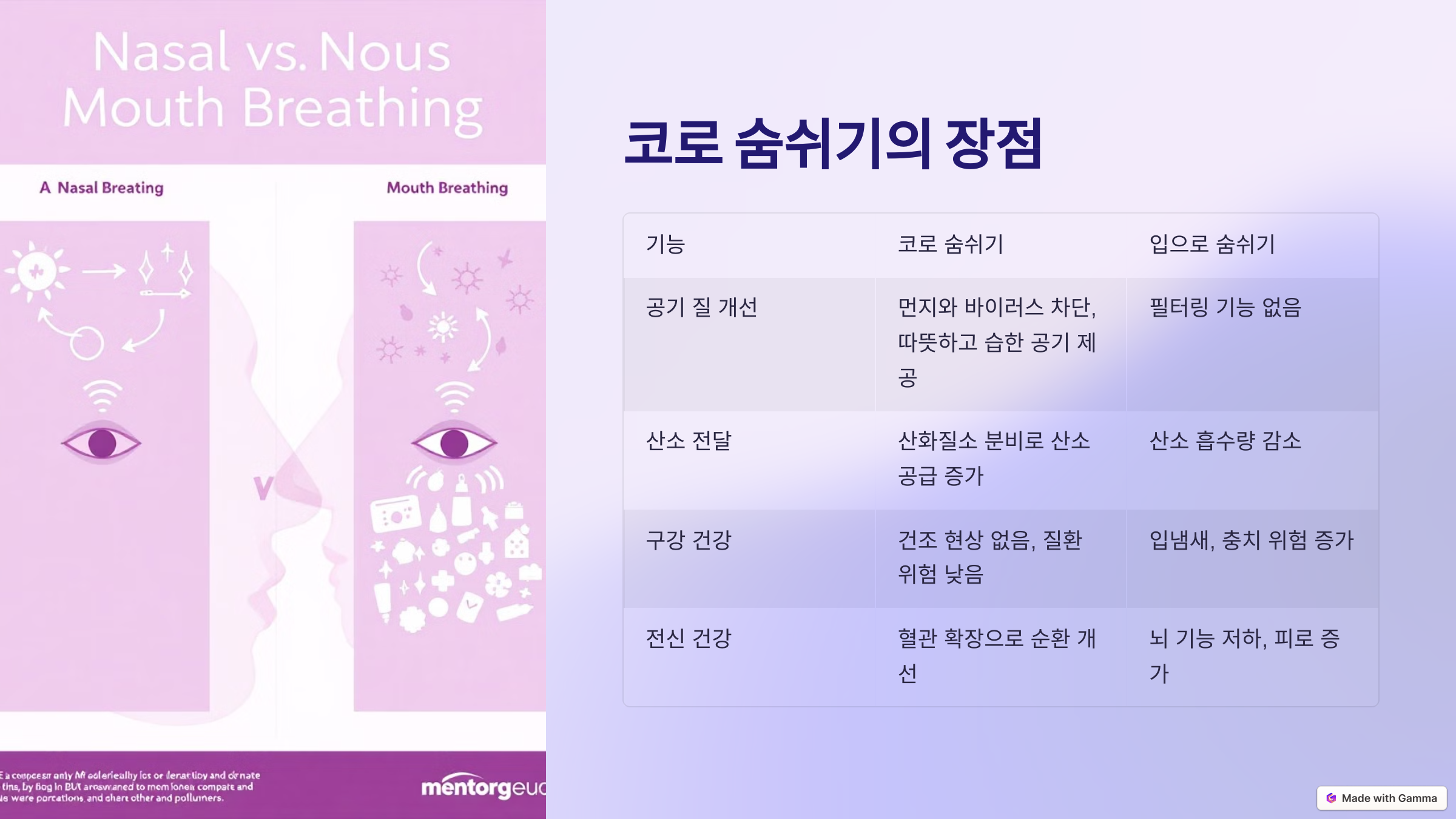 사람들이 무의식적으로 코로 숨쉬기를 하지만, 의외로 입으로 숨쉬는 습관을 가진 사람들도 많습니다. 이는 단순한 습관 문제가 아니라 건강에 직결된 중요한 이슈입니다. 코로 숨쉬기는 단순히 산소를 들이마시는 역할뿐만 아니라 공기 질을 개선하고, 건강 유지에 큰 도움을 줍니다.