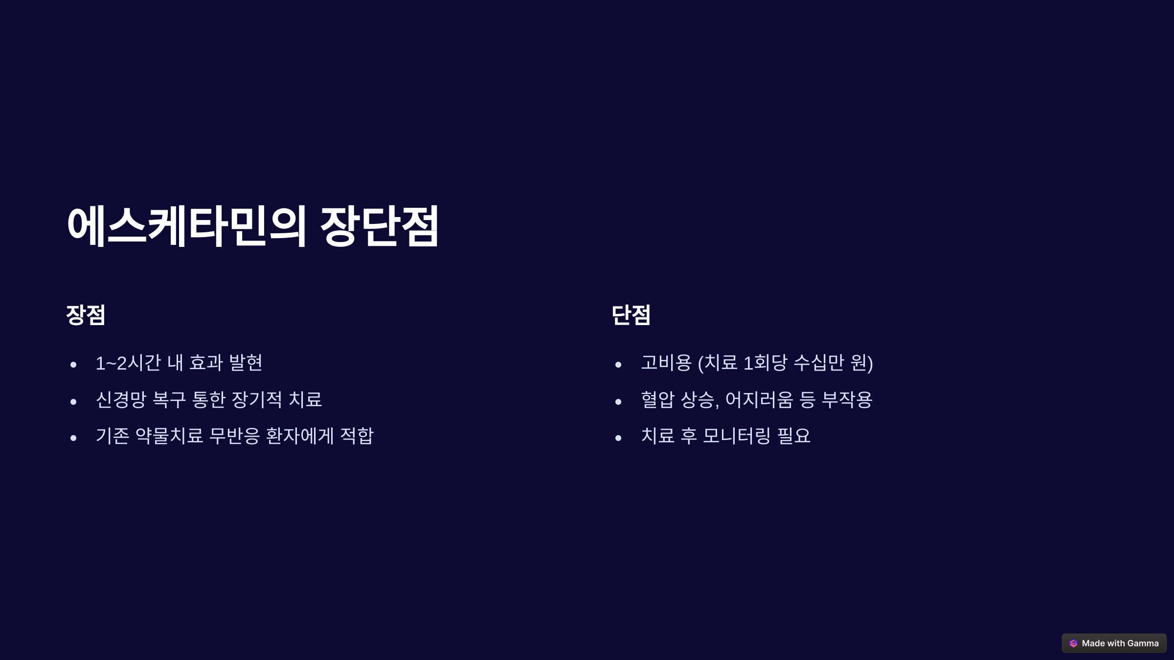 - 신경망 복구를 통한 장기적 치료 가능성.