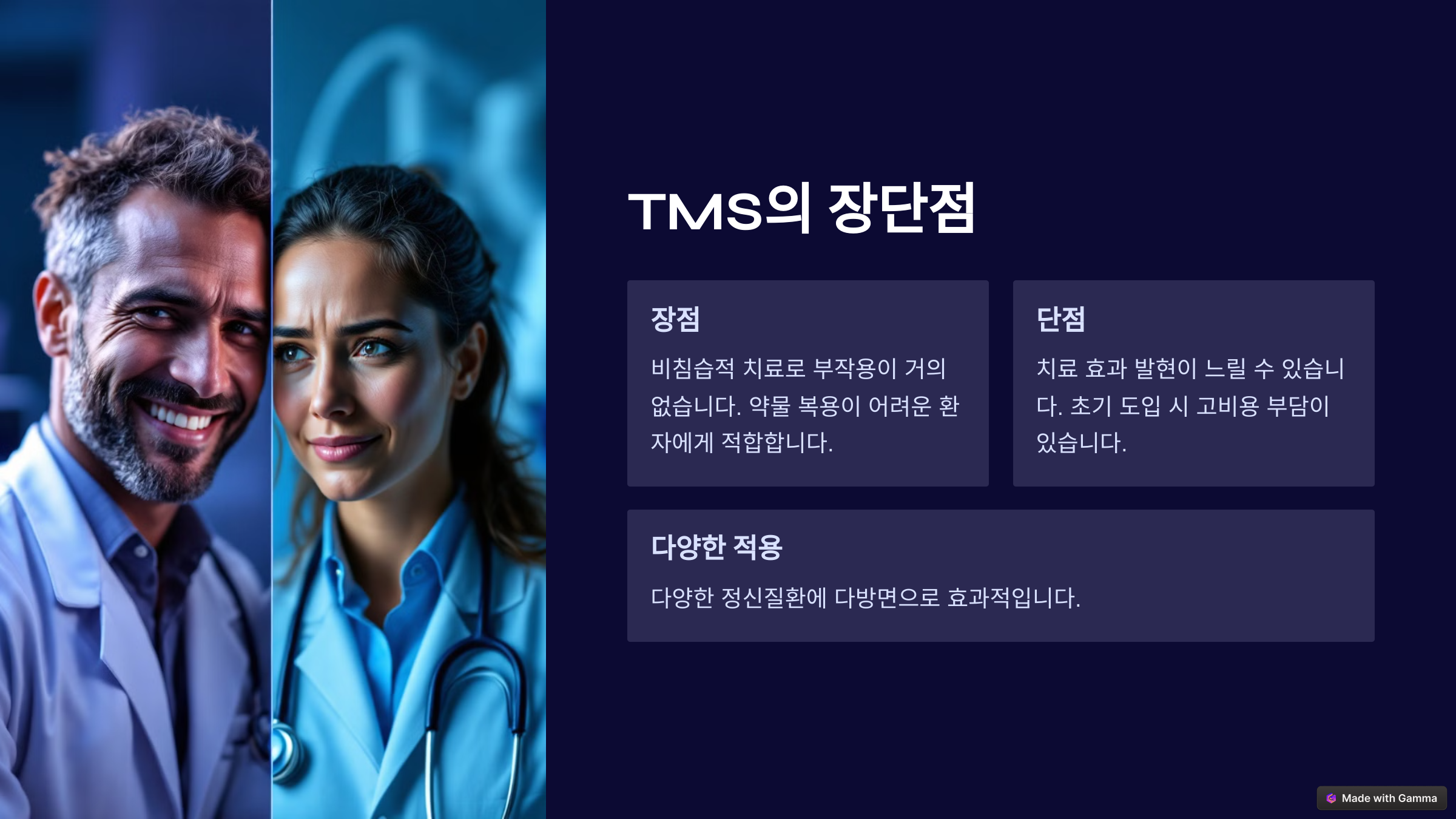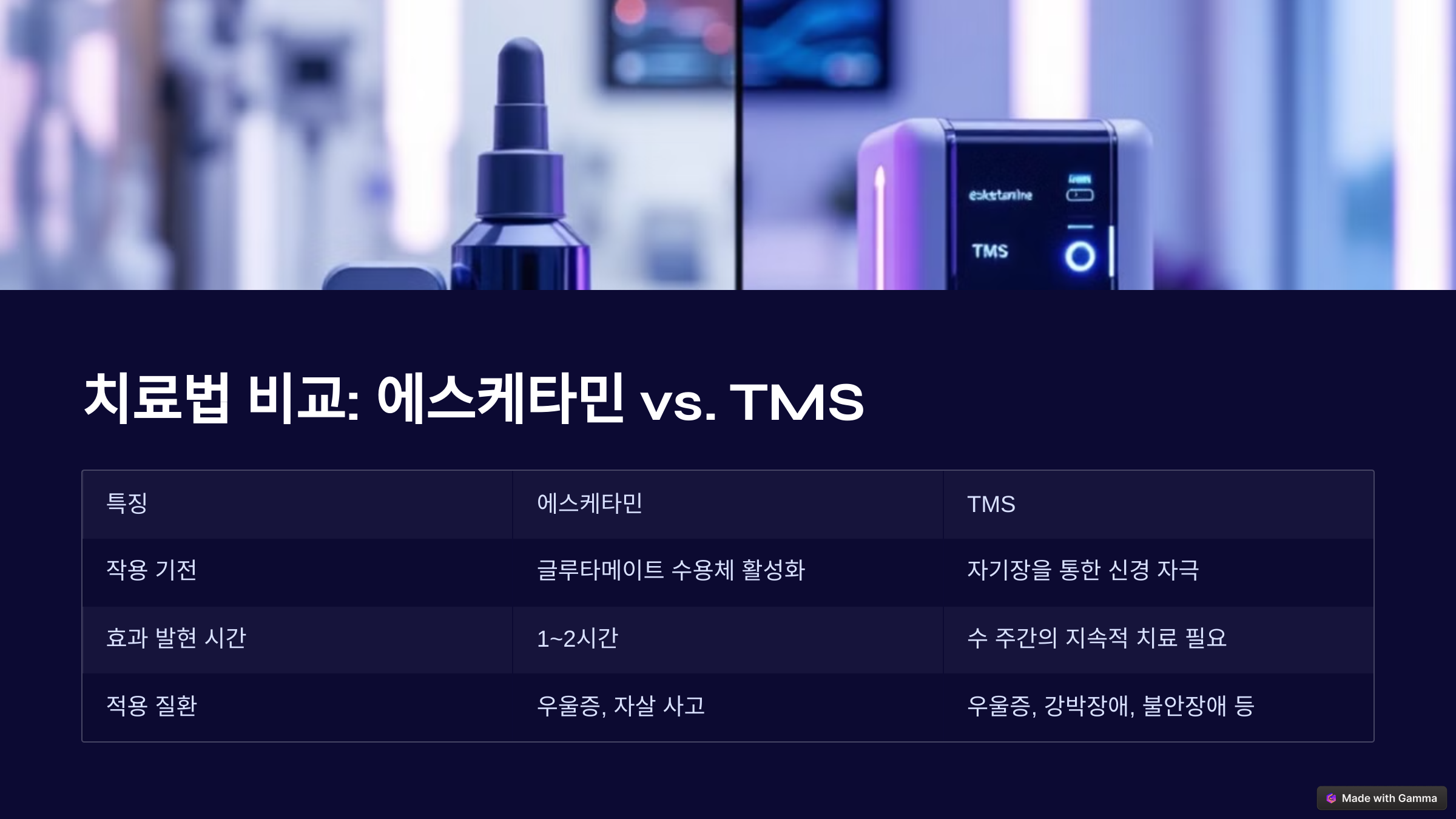 에스케타민과 TMS는 기존 약물 치료의 한계를 극복하며, 정신질환 치료의 새로운 지평을 열고 있습니다. 치료를 고려할 때는 본인의 증상, 경제적 여건, 부작용 가능성을 종합적으로 검토해야 합니다.